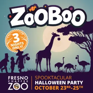 ZooBoo is back at Fresno Chaffee Zoo! The Zoo’s beloved Halloween event is returning for another season of family-friendly fun, costumes, and unforgettable memories! Get ready for a fun evening full of fall photo ops, magic shows, presentations, and of course, trick-o-treating! Get your tickets today.